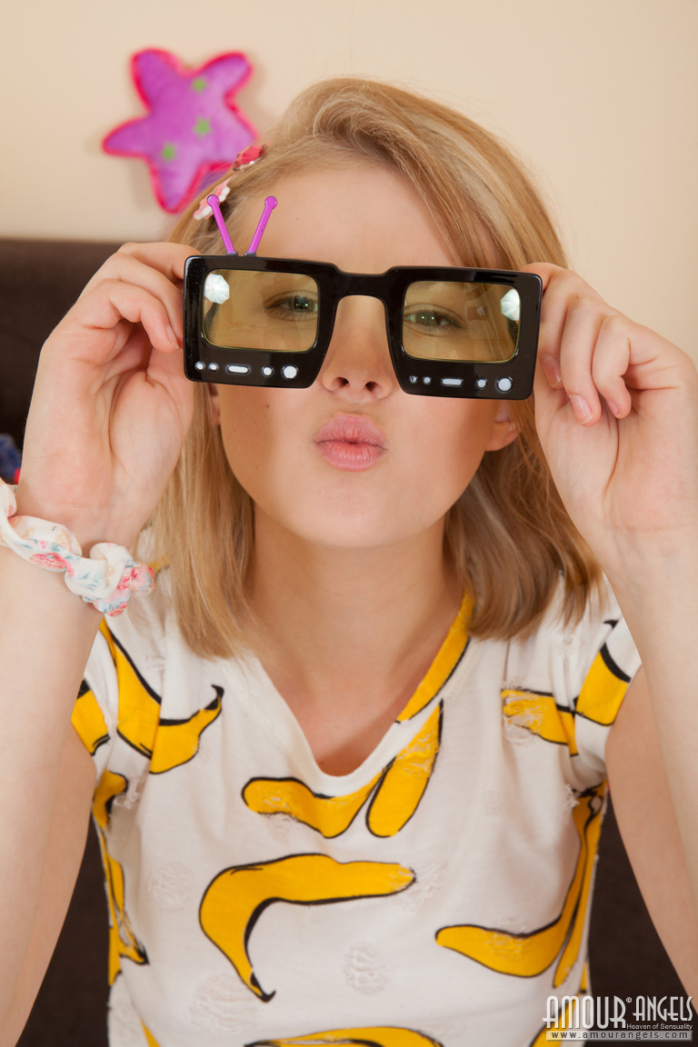 Sexy teenie with lengthy blond hair flaunts her tight nude frame with small perky tits.