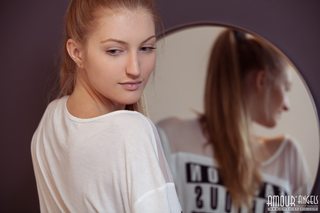 Lovely lovely teen takes of her vest and panties posing shamelessly ahead of cameras eye